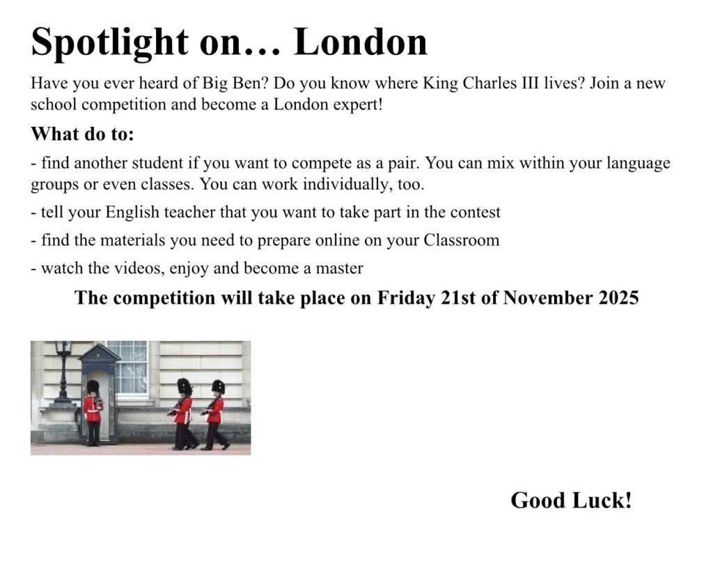 21 listopada (piątek) odbędzie się kolejny konkurs wiedzy o krajach anglojęzycznych z cyklu „Spotlight on…”. W tym roku Spotlight on London