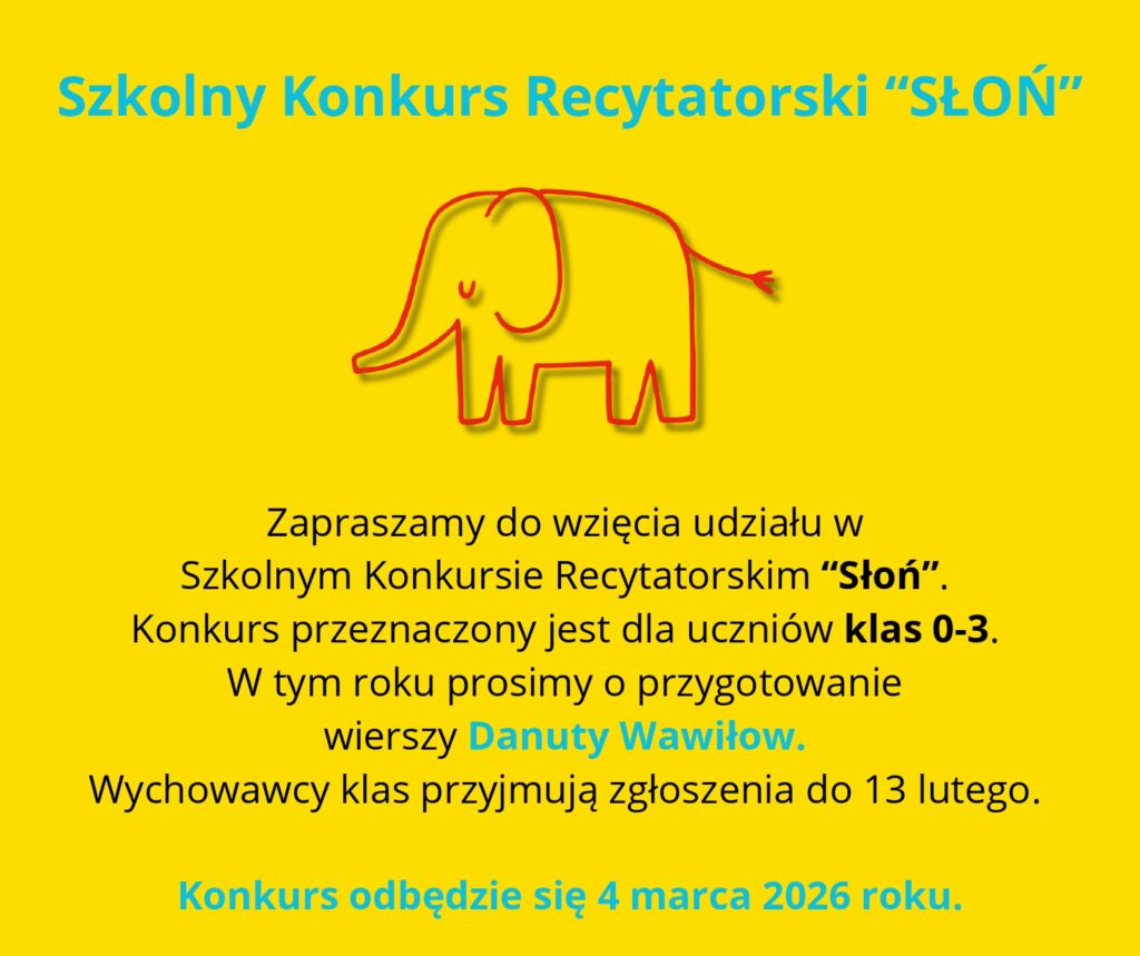 ZAPRASZAMY DO WZIĘCIA UDZIAŁU W KONKURSIE RECYTATORSKIM „SŁOŃ” 16.01.26
