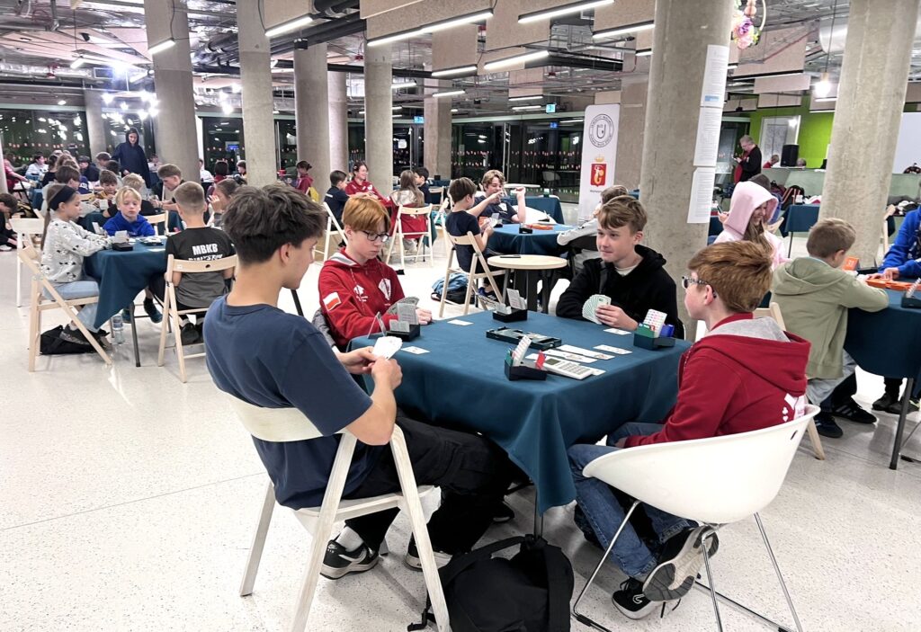 19 maja 2025 roku, uczniowie SKiE wzięli udział w Międzywojewódzkich Mistrzostwach Młodzików na zapis maksymalny w brydżu sportowym. Nasza szkoła zajęła pierwsze miejsce w punktacji szkół z trzech różnych województw, z imponującą przewagą około 700 pdfów nad kolejną szkołą.