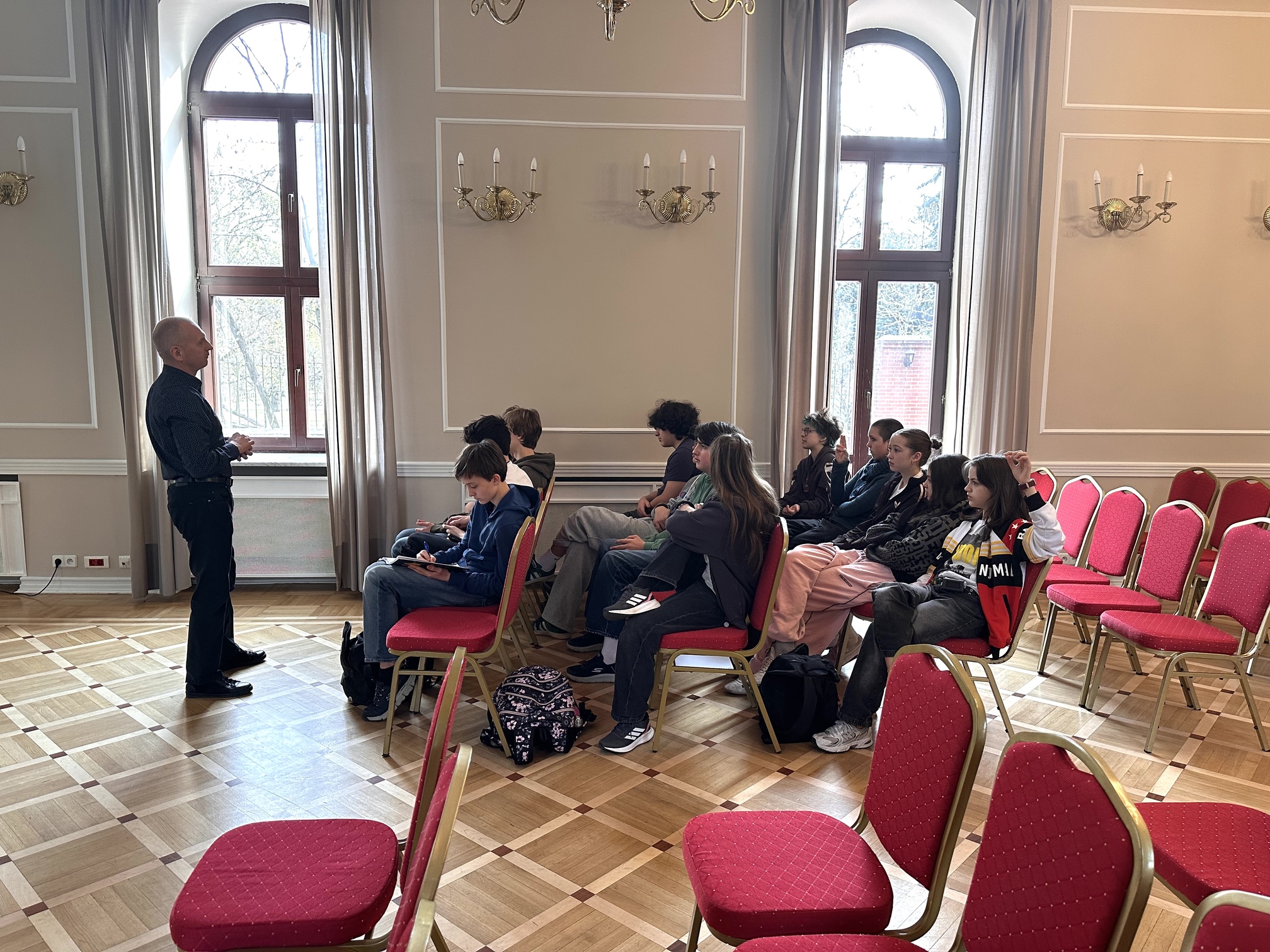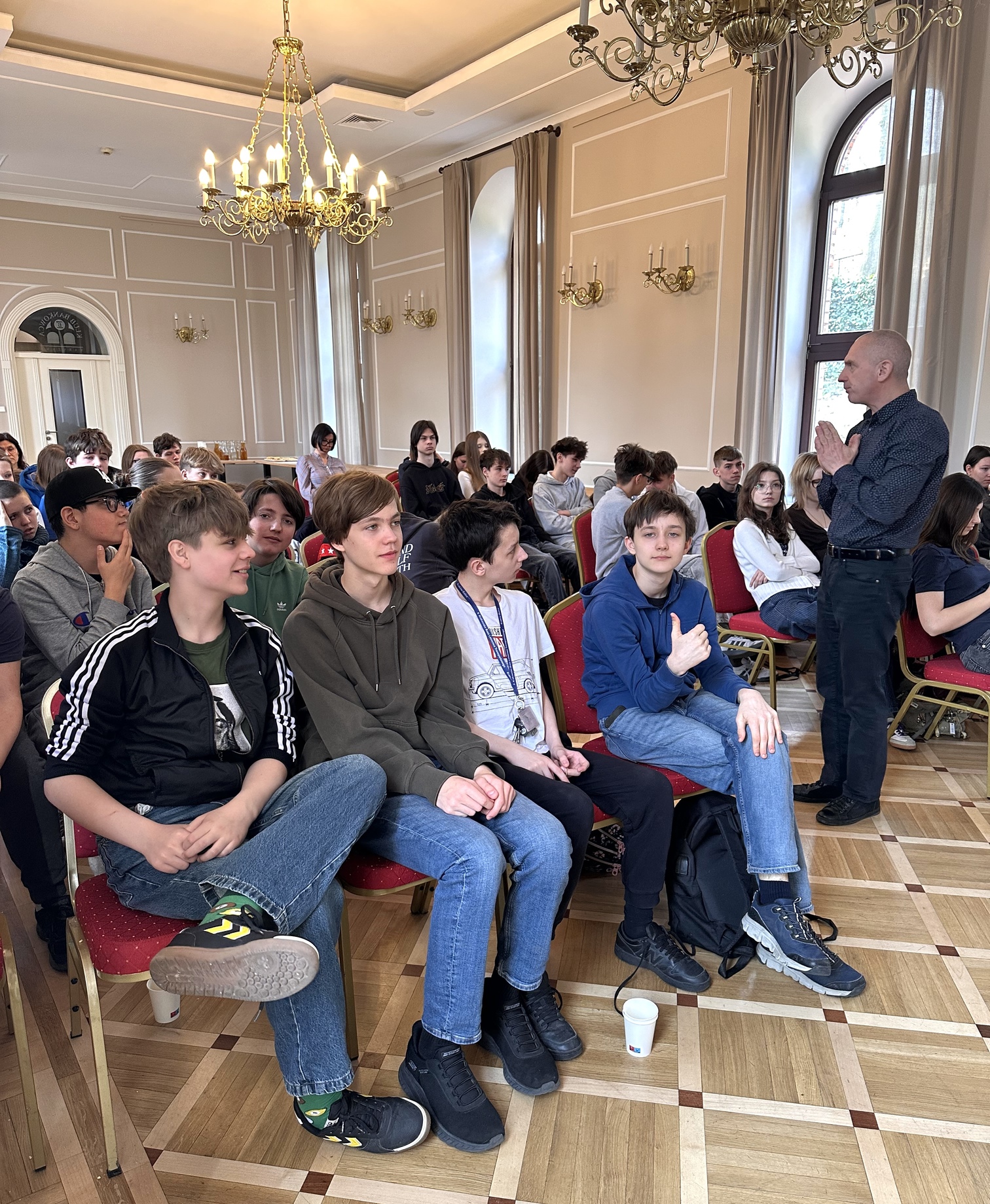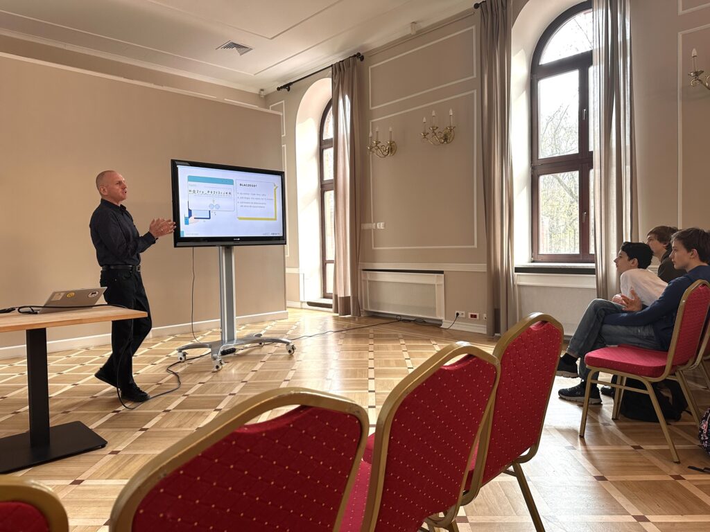 Zajęcia były wzbogacone licznymi przykładami z życia codziennego, co skłoniło uczestników do refleksji. Młodzież aktywnie uczestniczyła w spotkaniu, zadając wiele ciekawych pytań, na które Pan Maciej cierpliwie odpowiadał.