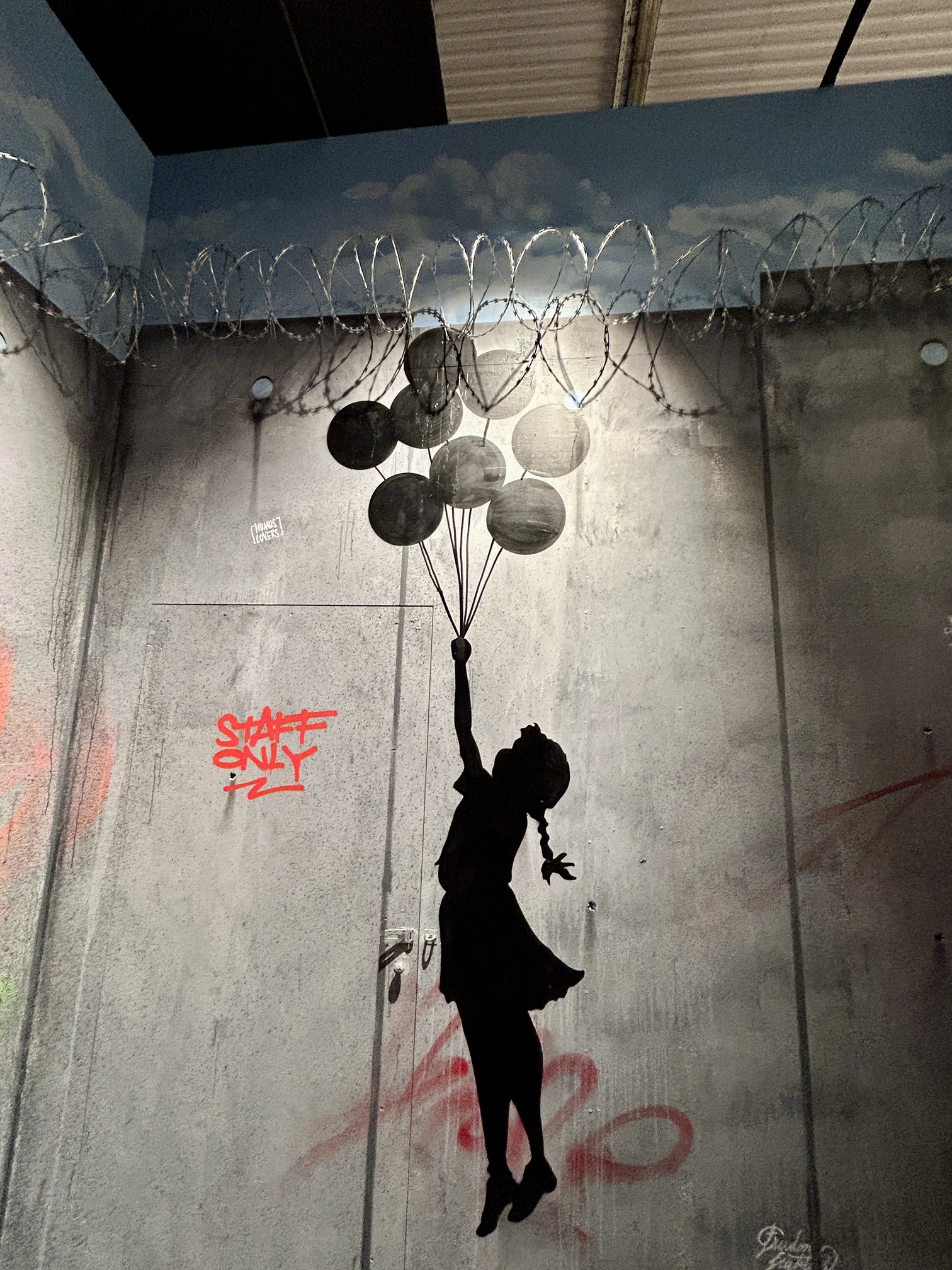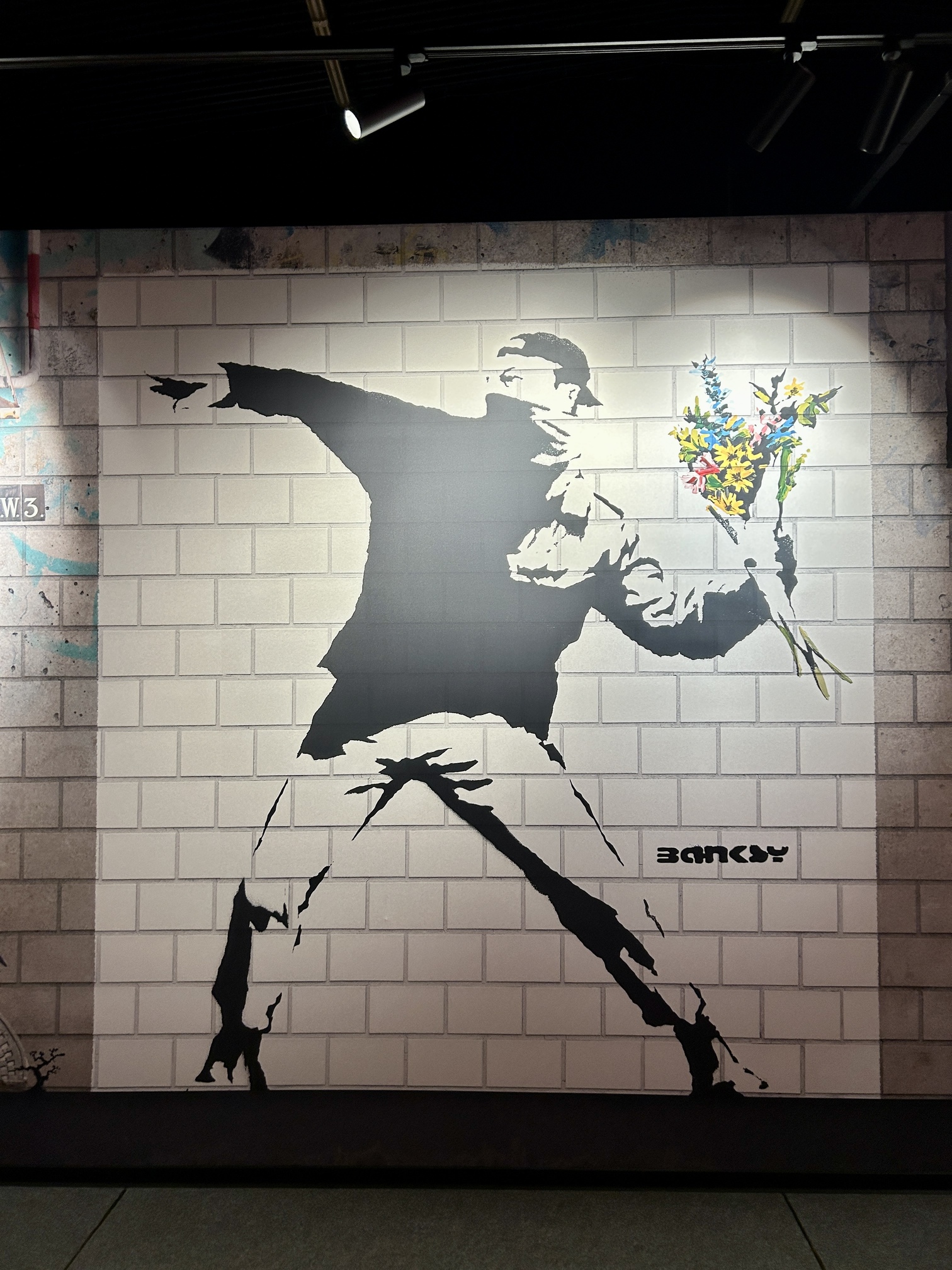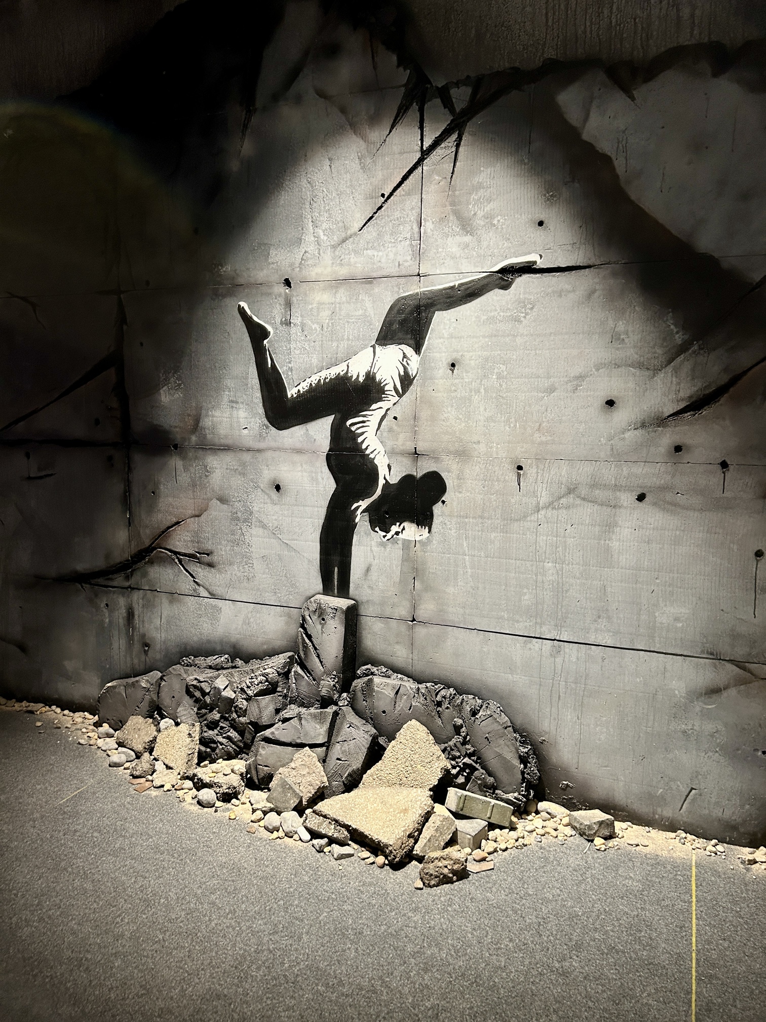 Wystawa prowadzi widza przez różne etapy kariery Banksy’ego – od wczesnych realizacji graffiti, poprzez bardziej konceptualne prace, aż po projekty społeczne i prowokacje artystyczne, które na stałe zmieniły sposób postrzegania sztuki ulicznej.