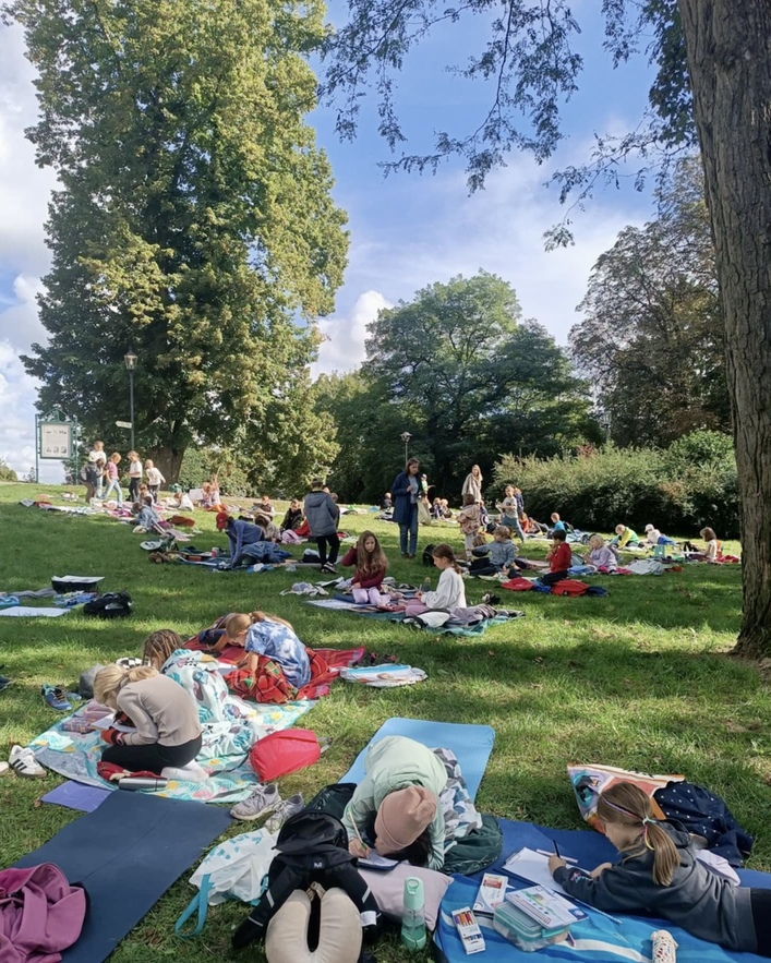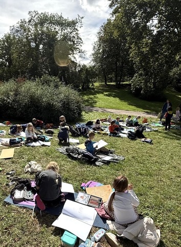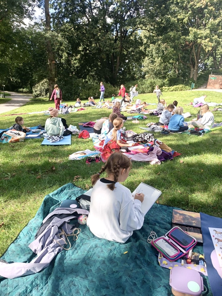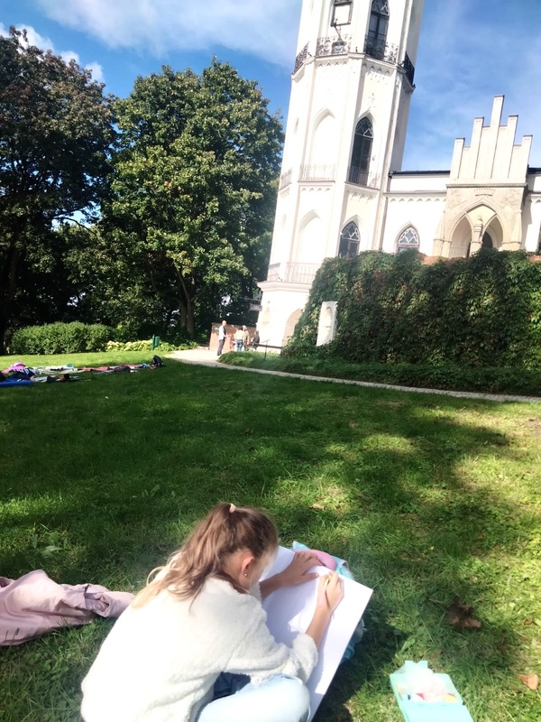 Po zwiedzeniu muzeum i jego wystaw przenieśliśmy się na zewnątrz, gdzie piękne otoczenie ogrodu i architektury stało się inspiracją do naszych rysunków.