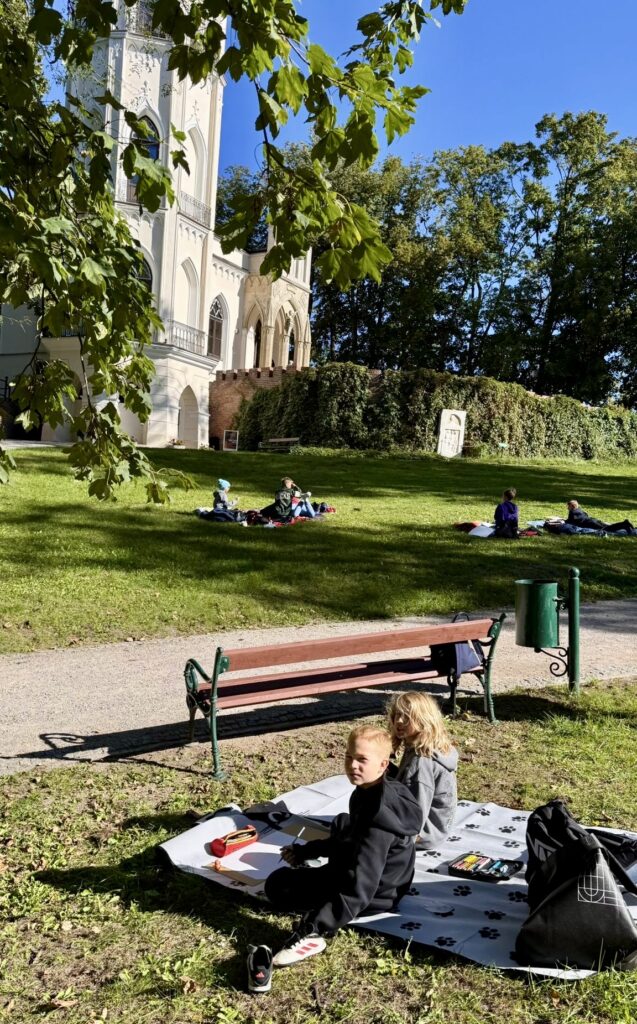 Otoczeni piękną architekturą pałacu i malowniczym parkiem, nasi młodzi artyści mieli okazję rozwijać swoje umiejętności plastyczne oraz czerpać inspiracje z romantycznego krajobrazu.