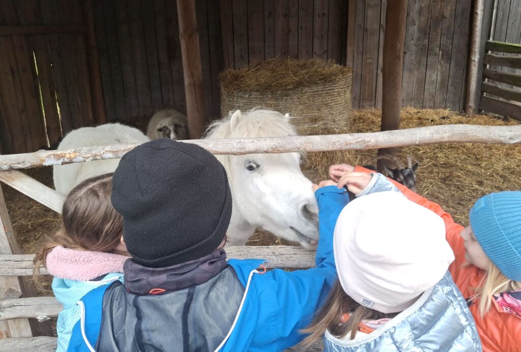 - przejażdżka wozem po okolicy, spotkanie z alpakami w mini-zoo oraz zabawy na sianie,