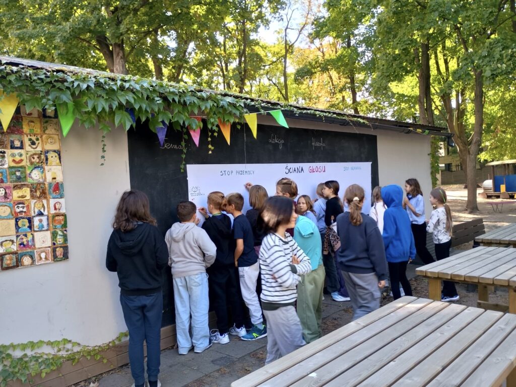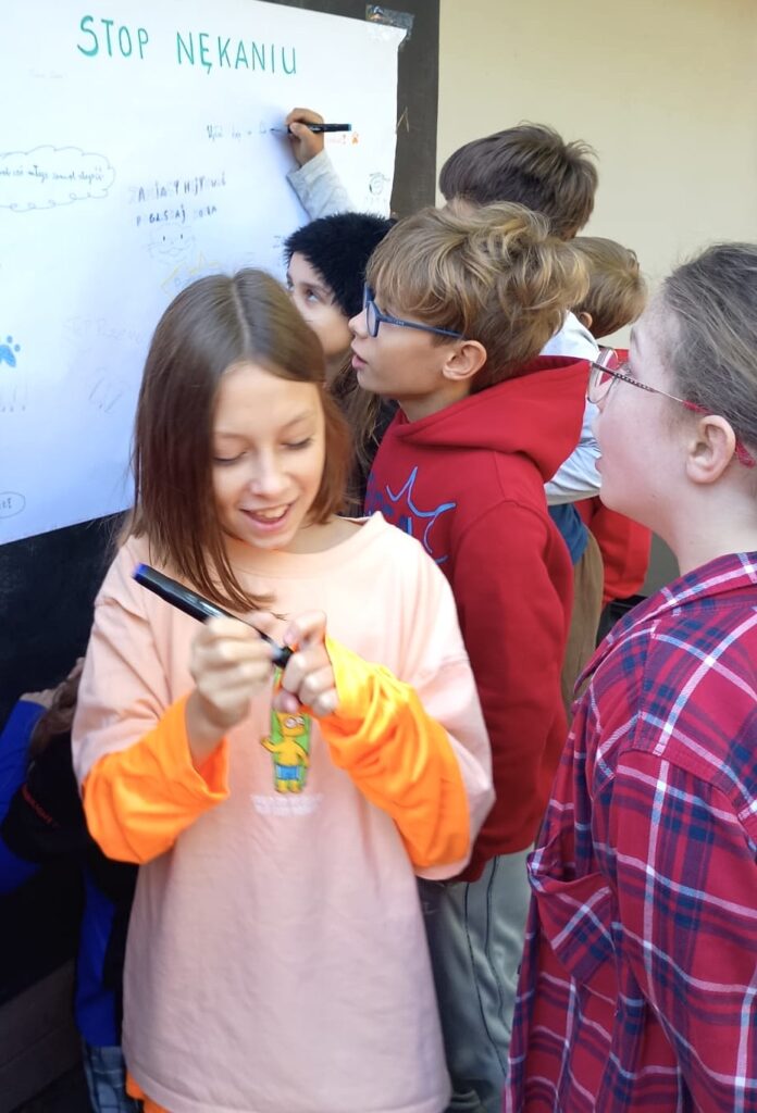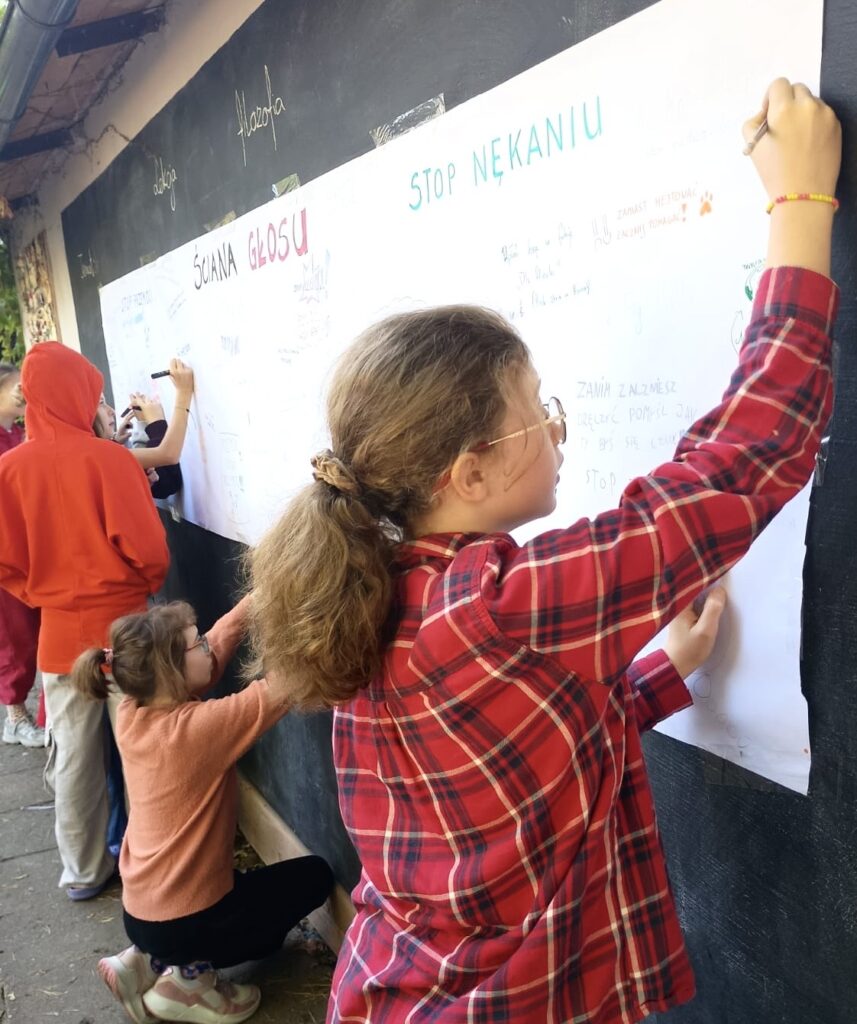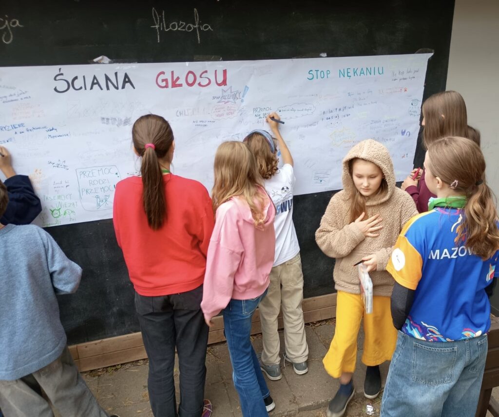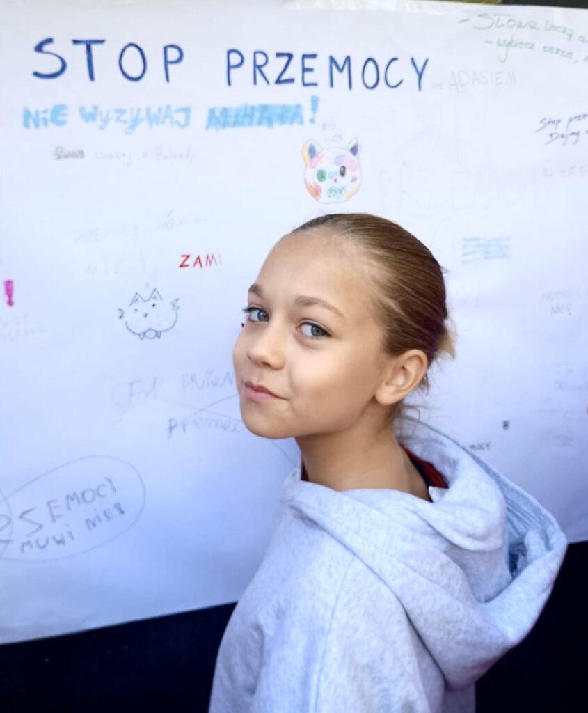 Dzięki takim działaniom przypominamy, że szkoła jest miejscem wolnym od przemocy, a wspólne zaangażowanie uczniów i nauczycieli pomaga budować atmosferę życzliwości, wsparcia i bezpieczeństwa.