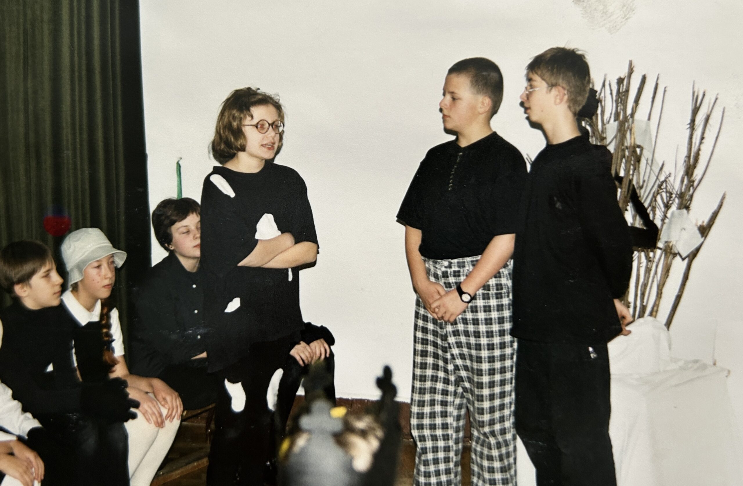 Sztukę reżyserowały prawie wszystkie postacie z klasy 5 pod opieką i czujnym okiem nauczyciela języka polskiego, pani Marii Topczewskiej.