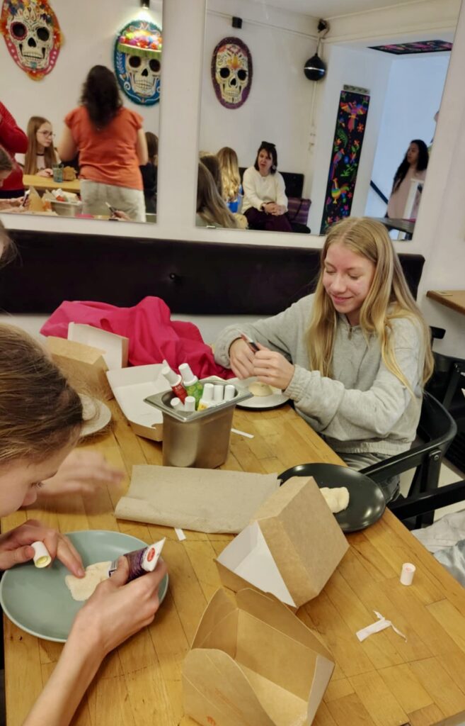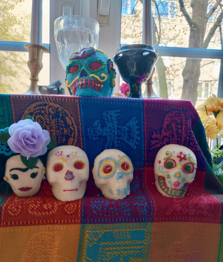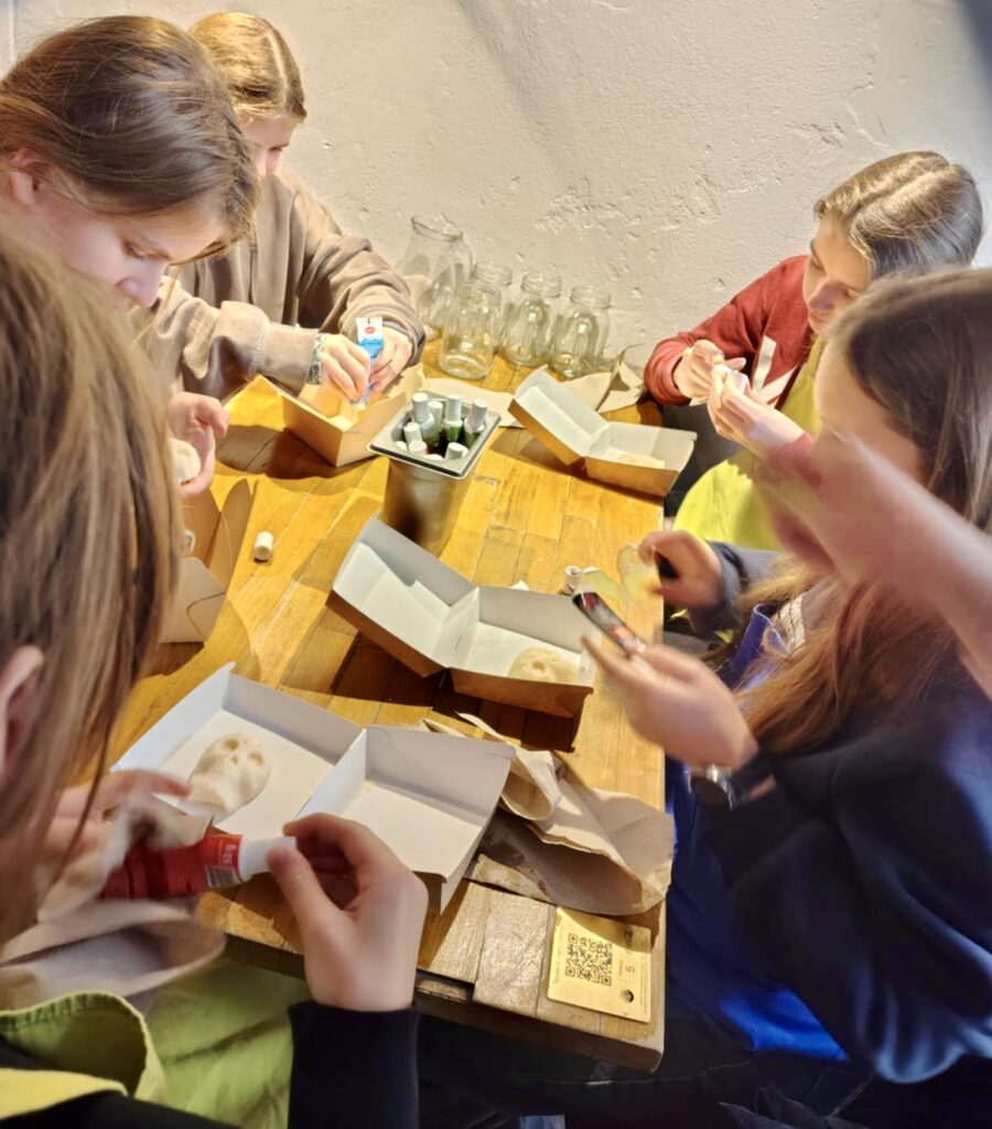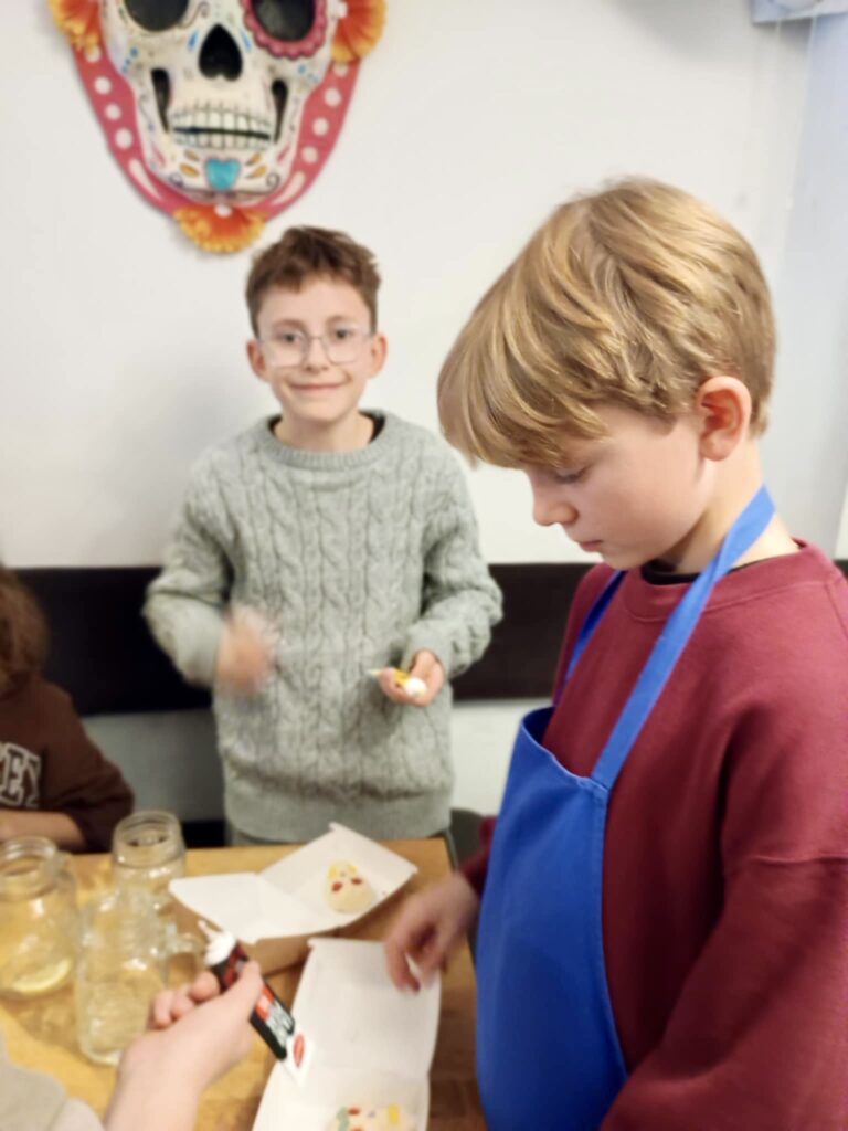 Z okazji zbliżającego się Halloween uczestnicy przygotowali również swoje własne, słodkie maski inspirowane meksykańskim „Dniem Zmarłych” (Día de los Muertos) – pełne barw, wzorów i kreatywnych pomysłów.