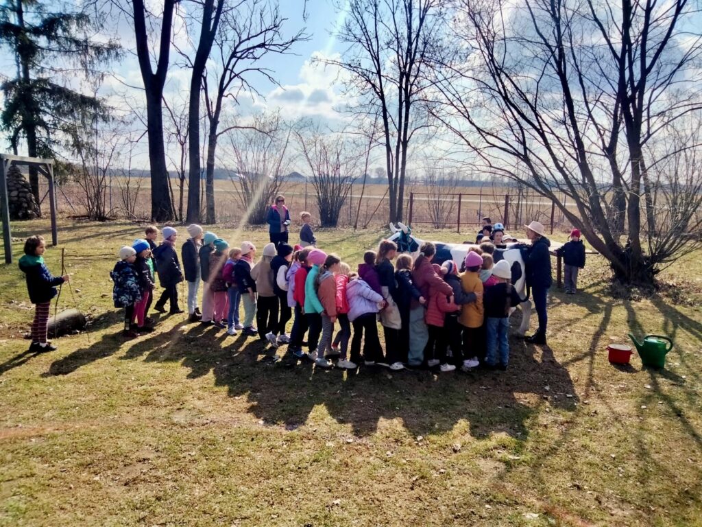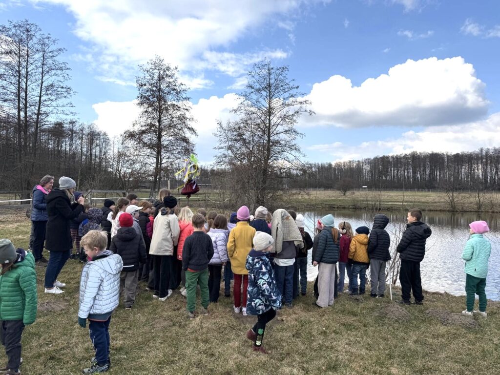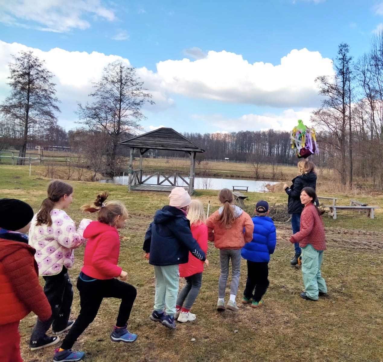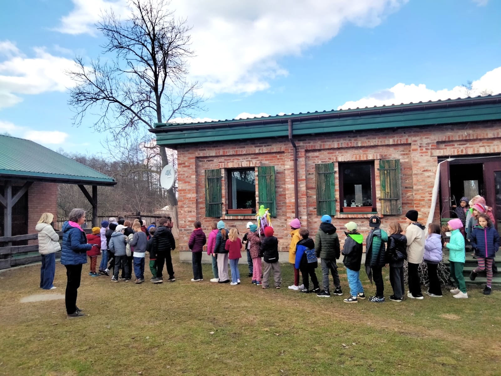 Klasy 0m, 1j oraz 2j radośnie pożegnały zimę podczas wyjazdu do gospodarstwa agroedukacyjnego „Na KOńcu wsi” w Brzozówce.